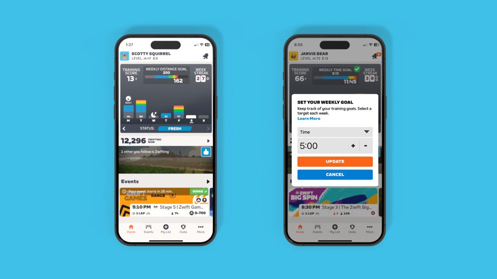 Nuevas metas semanales y seguimiento de progreso físico en la app Zwift Companion